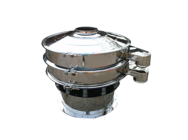 旋振篩(圓形振動篩)由立式振動電機作激振源,因為其上下端重錘安裝在發動軸兩側,使電機的旋轉運動轉變為垂直、水平、傾斜的三次元運動。  旋振篩產品特點:  設計精巧,耐用,適合任何粉類以及粘性液體的篩分?! 〔僮骱唵?,換網方便,易于清洗。  篩網無阻塞,粉末無飛揚。  雜質以及粗料自動排出,并且可以與給料設備、輸送設備配套使用,處理量大,生產效率高。  尺寸小,節省空間,易于移動?! ∫子陴B護,可單層或多層使用。  篩網設計合理耐用,換網只需3-5分鐘?! 『Y網可達5層,篩分出6種不同顆粒大小的物料
